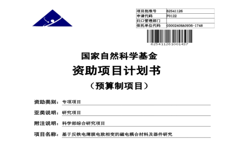 近日,国家自然科学基金委员会发布了2025年度专项项目的评审结果。由我院侯卫霄老师负责申报的《基于反铁电薄膜电致相变的磁电耦合材料及器件》项目获批立项。