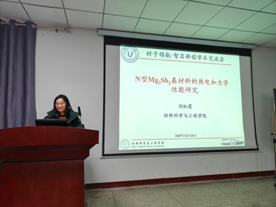 太阳集团网tyc9728刘虹霞副教授作了题为“N型Mg₃Sb₂基础热电材料的热电和力学性能研究”的报告,系统介绍了通过阴/阳离子掺杂对Mg₃Sb₂基础材料的电学、热学和力学性能的协同优化策略,深入阐释了其性能增强机理,为推进该材料体系的实用化进程提供了重要支撑。